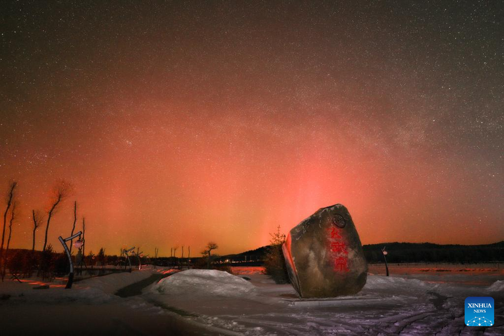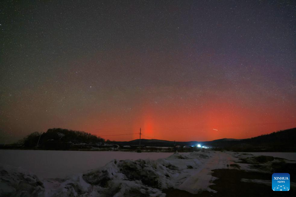 This photo taken on March 22, 2026 shows the aurora observed from Beiji Village of Mohe City, northeast China's Heilongjiang Province. Due to the influence of geomagnetic activities, many places in Heilongjiang Province witnessed splendid auroras from the night of March 22 to the early morning of March 23. (Photo by Guo Xinyu/Xinhua)