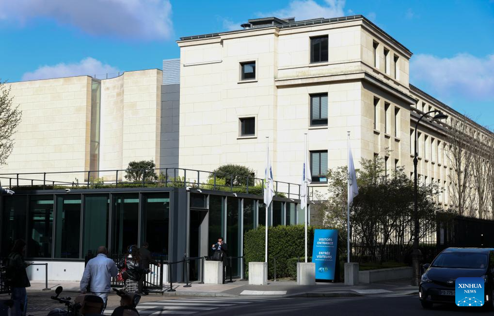 This photo taken on March 26, 2026 shows an exterior view of the headquarters of the Organization for Economic Cooperation and Development (OECD) in Paris, France. Global economic growth is projected to ease to 2.9 percent in 2026 from 3.3 percent in 2025, before edging up to 3.0 percent in 2027, the OECD said in its latest Economic Outlook on Thursday. The report said that the evolving conflict in the Middle East will test the resilience of the global economy. A prolonged period of higher energy prices would add markedly to business costs, raise consumer price inflation, and have adverse consequences for growth. (Xinhua/Wu Huiwo)