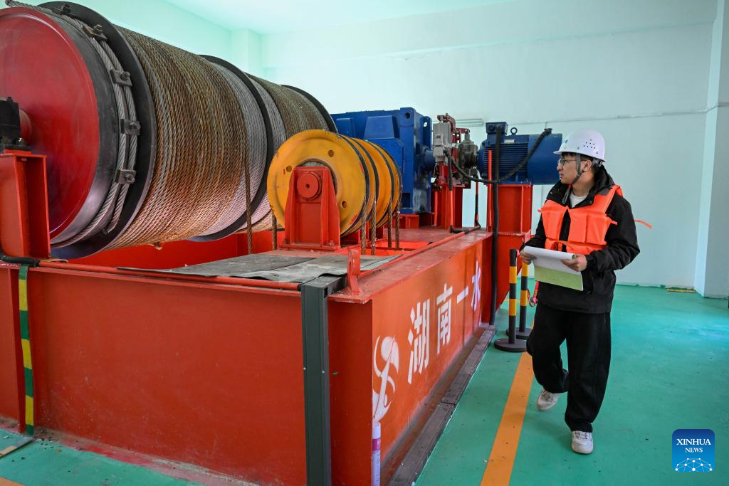 A staff member inspects the maintenance gate chamber of the spillway tunnel at a river hydropower complex in Xinyuan County of Ili Kazak Autonomous Prefecture, northwest China's Xinjiang Uygur Autonomous Region, March 27, 2026. Recently, in response to the potential flood risks caused by snowmelt in the Tianshan and Altay Mountains, local authorities in Ili have conducted thorough hazard identification and rectification, increased the frequency of meteorological and hydrological monitoring, stockpiled sufficient flood control supplies, and established emergency rescue teams to prevent flood-related disasters during the flood season. (Xinhua/Ding Lei)