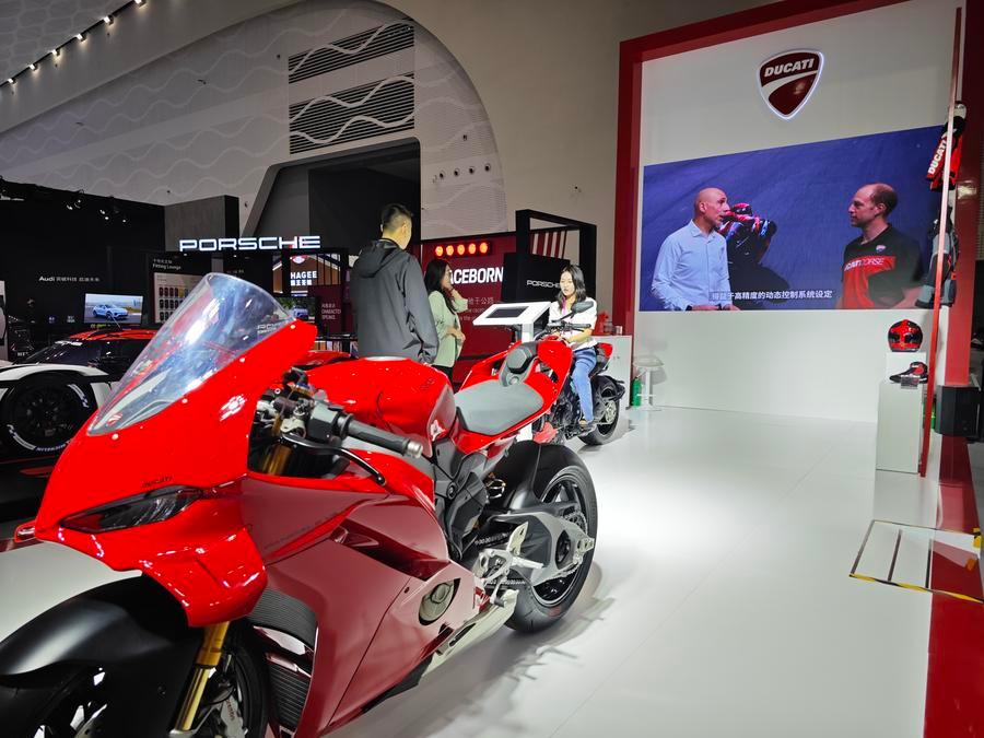 Visitors view the Ducati motorcycles at the 5th China International Consumer Products Expo (CICPE) in Haikou, capital of south China's Hainan Province, April 14, 2025. (Xinhua/Zhou Huimin)
