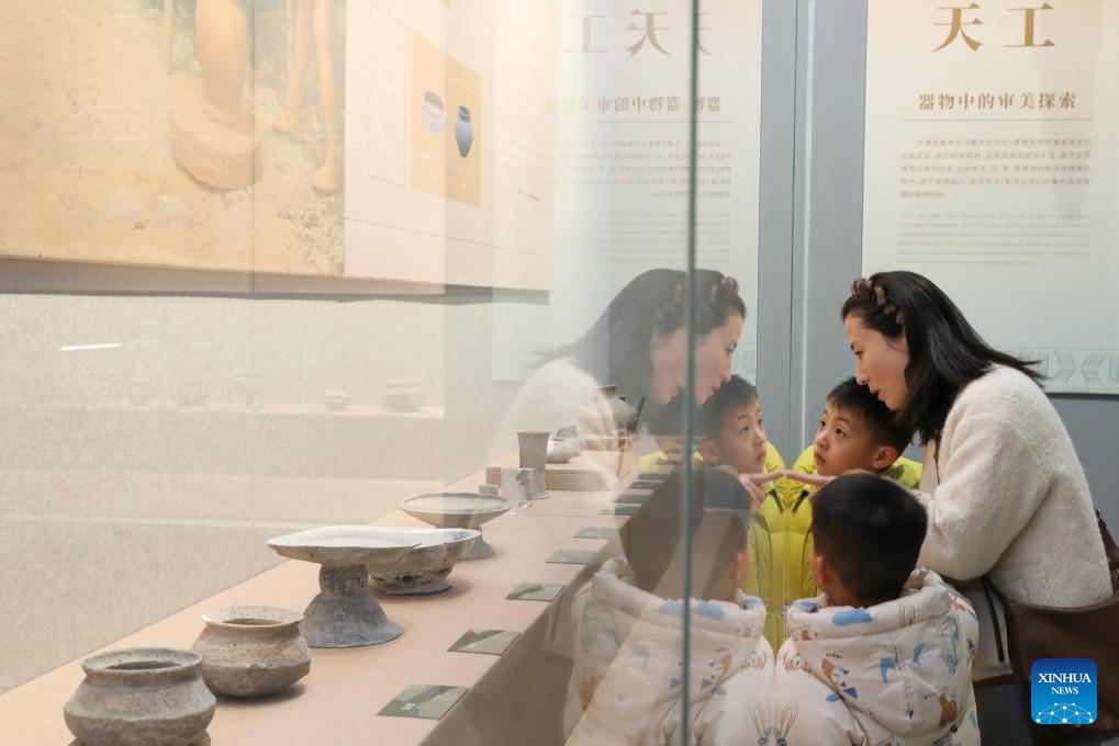 People visit an exhibition in Haian City under Nantong, east China's Jiangsu Province, Feb. 7, 2026. In recent years, Nantong has scaled up efforts to improve the water conservancy system, coupled with its green development endeavors in river basins and seaside areas. (Photo by Gu Binbin/Xinhua)