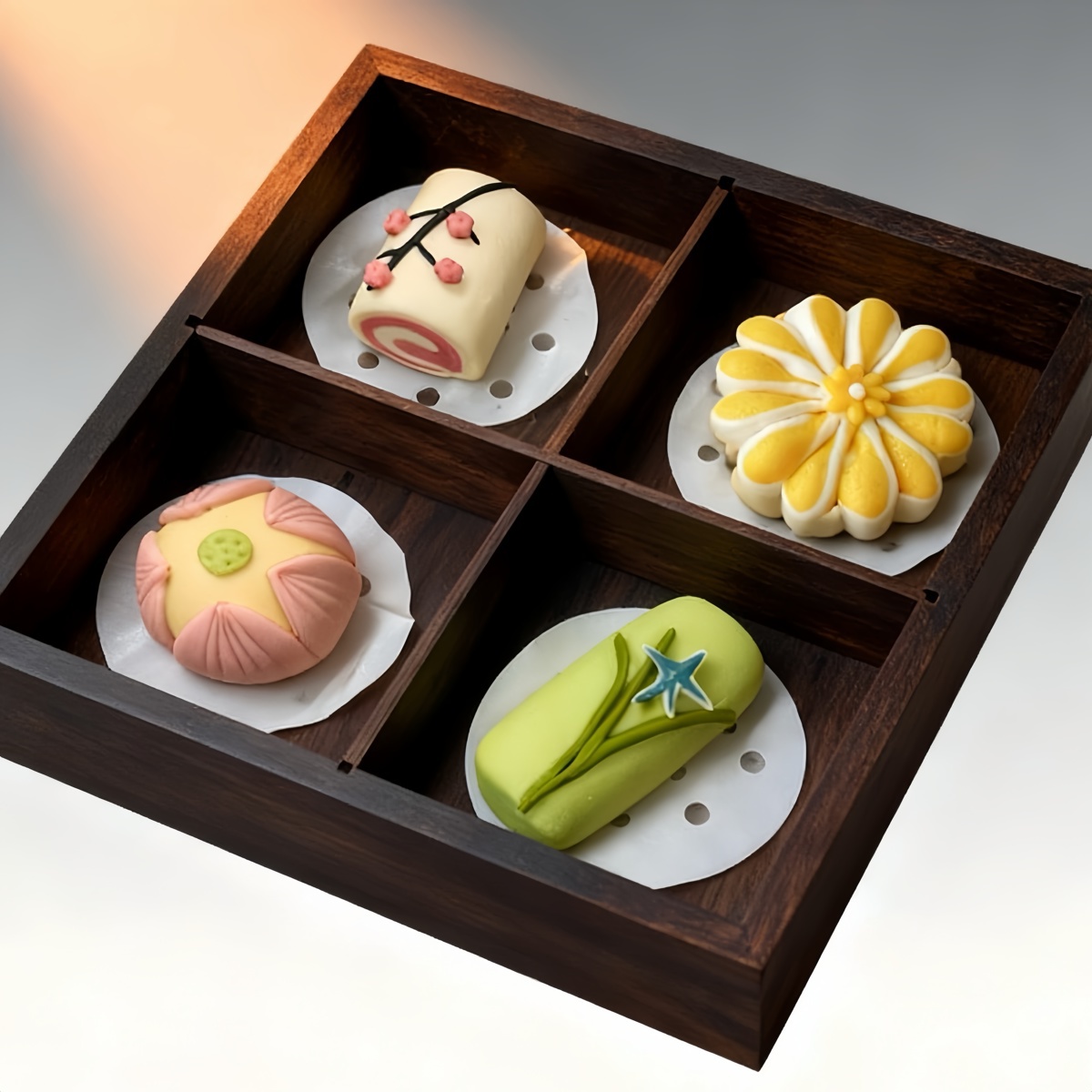 Inspired by the artistry of decorative pastries, the steamed buns bring the four seasons to life through floral motifs featuring spring orchids, summer lotuses, autumn chrysanthemums and winter plums, capturing the essence of traditional Chinese aesthetics.