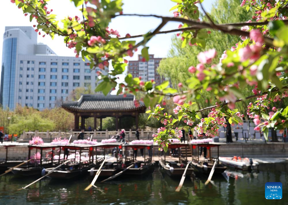 This photo taken on April 1, 2026 shows crabapple blossoms at a park in Beijing, capital of China. Many riverbanks in Beijing are dotted with blooming flowers, attracting numerous citizens and tourists to come for sightseeing. (Xinhua/Zhang Chenlin)