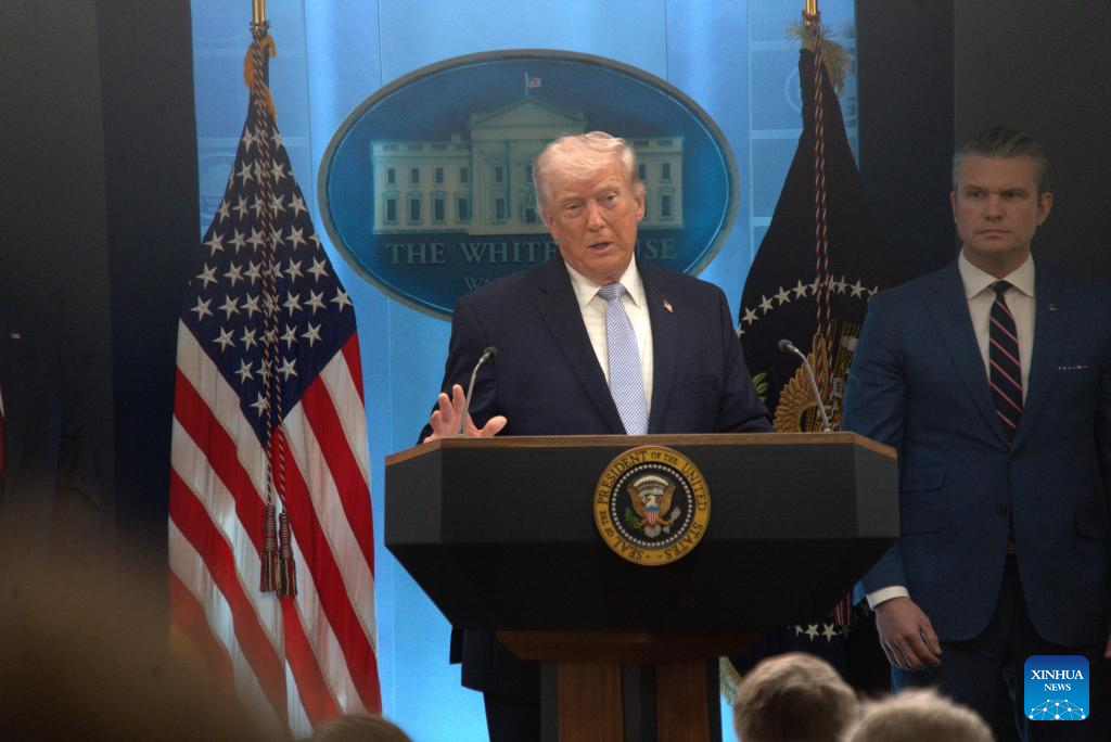 WASHINGTON, April 6 (Xinhua) -- U.S. President Donald Trump said Monday that Iran could be "taken out" in one night and that night "might" be Tuesday evening, the deadline Trump set for Iran to make a deal and reopen the Strait of Hormuz, while claiming that negotiations with the Iranian side via intermediaries over the deal are "going well."