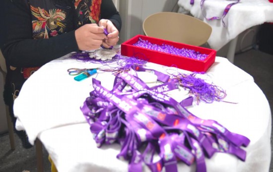 A craftswoman assembles ribbons onto the medals for the 2026 Dingzhou Half Marathon in Dingzhou city, north China's Hebei Province, March 13, 2026. (Xinhua/Dong Xiaokun)