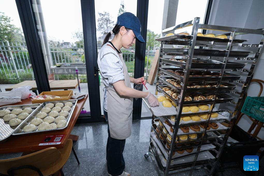 These young entrepreneurs, equipped with internet thinking, modern business logic, and innovative business models, have transformed fields and farmhouses into cultural and tourism offerings. They have introduced trendy elements such as art markets, kiln-baked bread, rural cafes, pet socializing, and educational workshops into the countryside, helping villagers promote and sell specialty agricultural products and boosting local incomes. (Xinhua/Xu Yu)