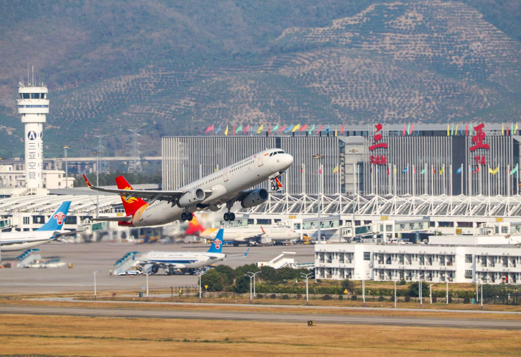 A plane takes off from Sanya Phoenix International Airport in Sanya, south China's Hainan province. (Photo/Ye Longbin)
