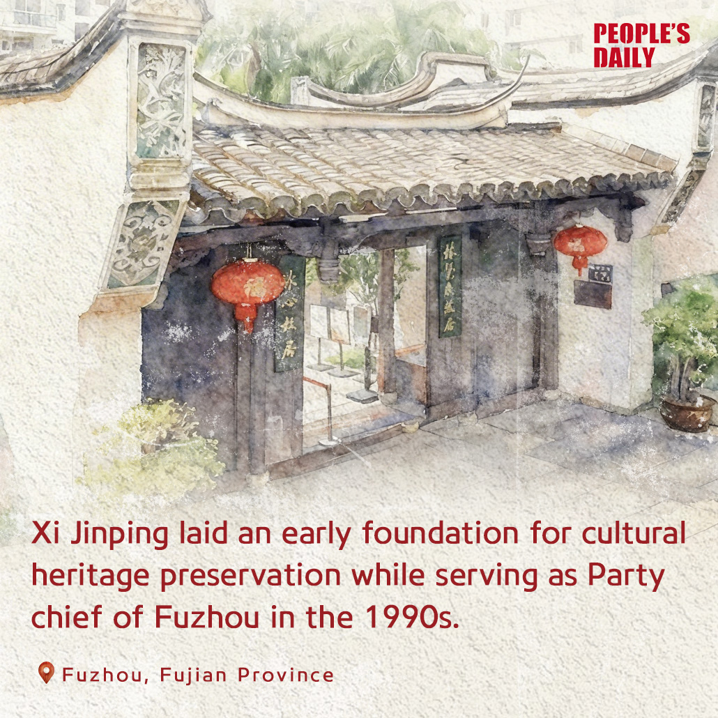 During the urban development boom of the 1980s and 1990s, the former residence of Lin Juemin, a renowned revolutionary hero, in Fuzhou's Sanfang Qixiang (Three Lanes and Seven Alleys) faced demolition. Upon learning this, Xi Jinping immediately halted the plan. In March 1991, he held a site meeting on cultural heritage, preserving the ancient city's cultural roots.