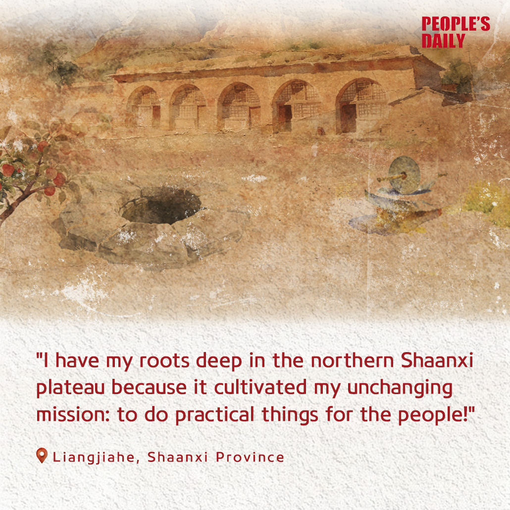 From 1969 to 1975, Xi Jinping lived and worked in Liangjiahe village as an educated youth in Shaanxi Province. It was there that he joined the Communist Party of China (CPC) and, in 1974, was elected Party chief of Liangjiahe village. Xi led a series of initiatives, including digging a well that still provides drinking water today.
