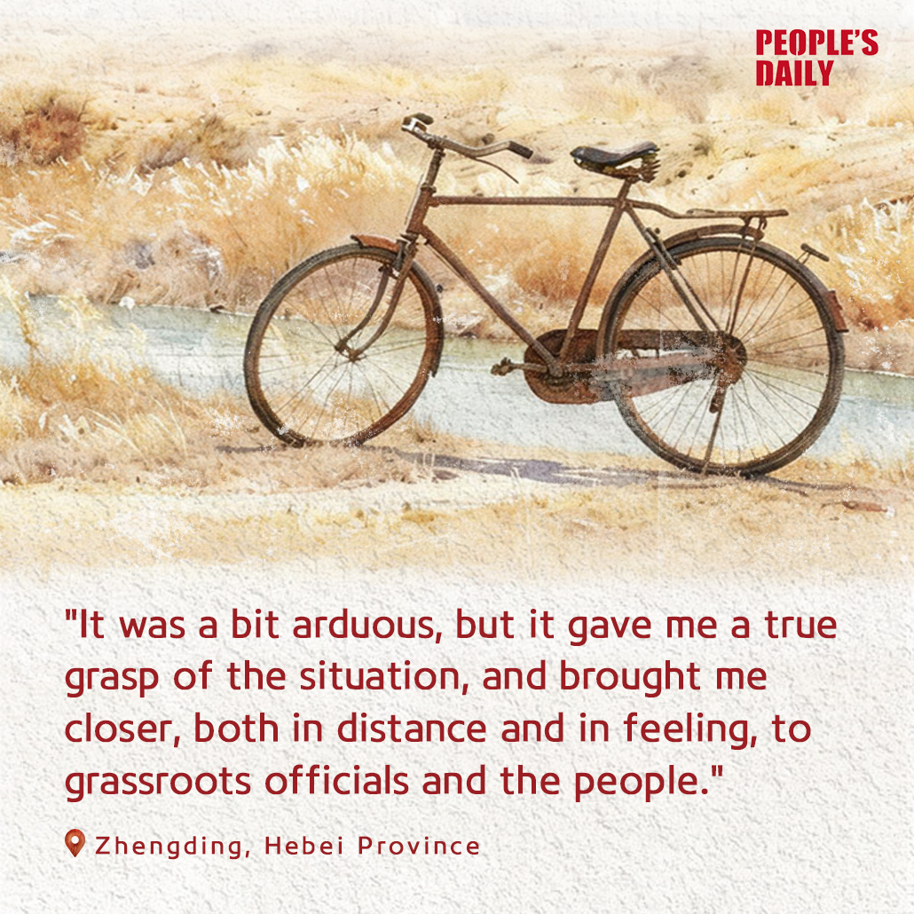 When working in Zhengding county, Hebei Province, from 1982 to 1985, Xi Jinping often rode an old bicycle conducting fact-finding missions. He visited all 25 communes and over 220 production teams in the county.