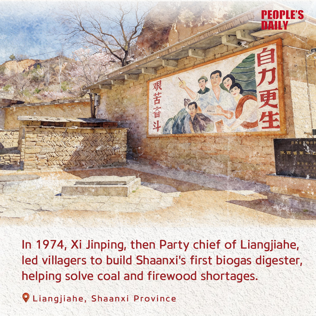 Communists must bear in mind that working for the people's well-being is their greatest political achievement. On January 8, 1974, People's Daily published a report on the large-scale promotion of biogas in Sichuan Province. After reading it, Xi Jinping made a special trip to Sichuan to learn from their experience. That July, he led Liangjiahe villagers to build Shaanxi's first biogas digester.