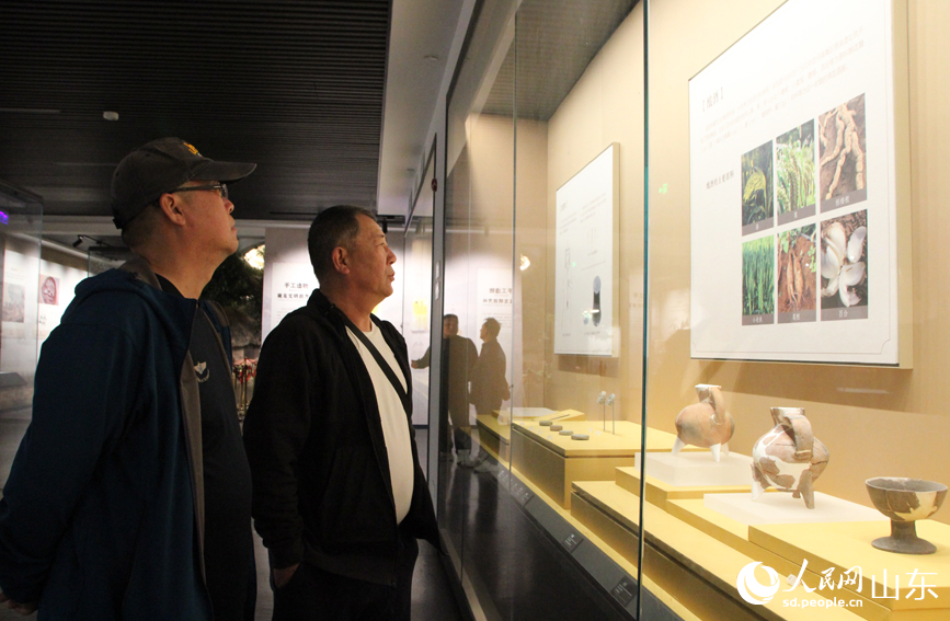 Tourists watch artifacts at the Dawenkou Site Museum in Dawenkou town, Daiyue district, Tai'an city, east China's Shandong Province. (People's Daily Online/Song Cui)