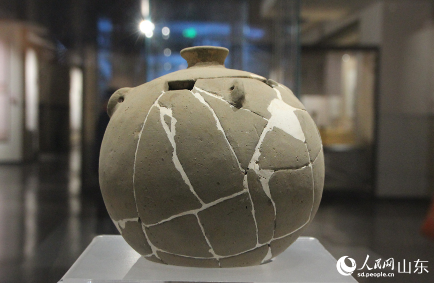 Photo shows an artifact on display at the Dawenkou Site Museum in Dawenkou town, Daiyue district, Tai'an city, east China's Shandong Province. (People's Daily Online/Song Cui)