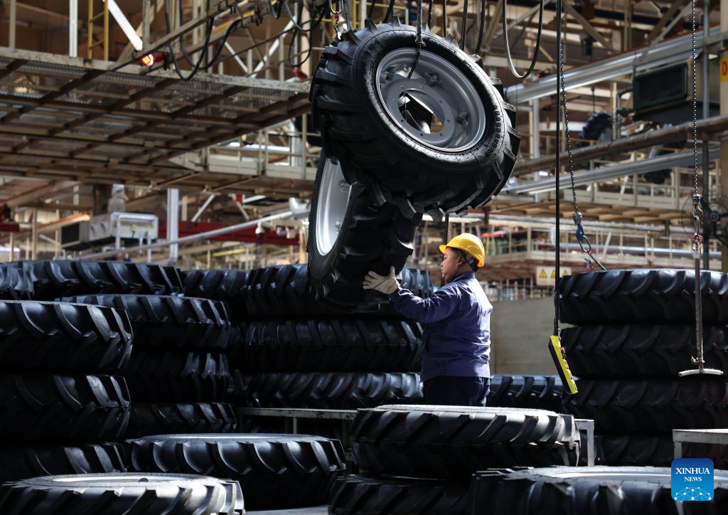 An employee tests tractors at China Yituo Group Co., Ltd. in Luoyang, central China's Henan Province, April 14, 2026.