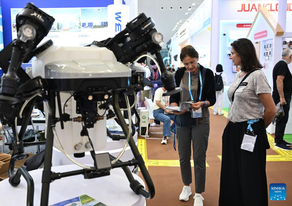 International buyers look at a plant protection drone at the 139th edition of the China Import and Export Fair in Guangzhou, south China's Guangdong Province, April 15, 2026. The 139th edition of the China Import and Export Fair, also known as the Canton Fair, opened here on Wednesday, drawing a record number of over 32,000 participating enterprises. (Xinhua/Deng Hua)