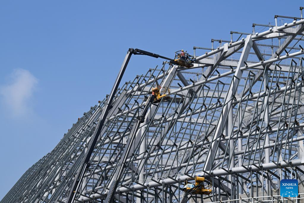 Workers work at the construction site of the Burning Plasma Experimental Superconducting Tokamak (BEST) in Hefei, east China's Anhui Province, April 15, 2026. Dubbed the "artificial sun," the BEST facility represents one of China's major ventures into controlled nuclear fusion and is poised to attempt the world's first fusion energy power generation demonstration. (Xinhua/Ma Jinrui)