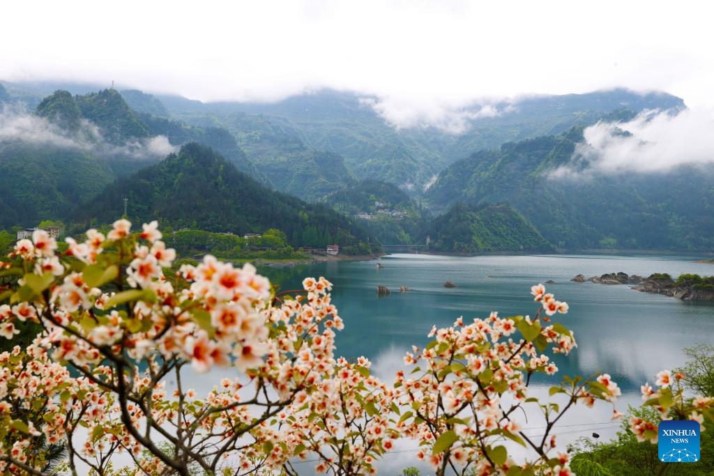 This photo taken on April 15, 2026 shows a view of the Xiaonanhai scenic spot in Qianjiang District, southwest China's Chongqing. (Photo by Yang Min/Xinhua)
