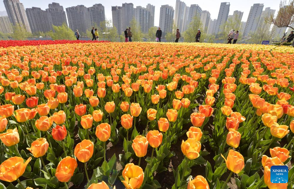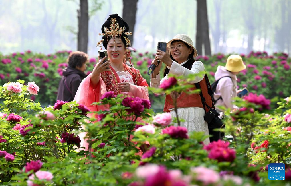 Tourists take photos at the peony garden of the Shijiazhuang botanical garden in Shijiazhuang, north China's Hebei Province, April 15, 2026. (Photo by Chen Qibao/Xinhua)
