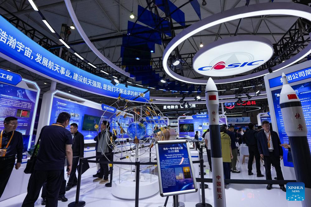 Guests visit an aerospace science exhibition in Chengdu, southwest China's Sichuan Province, April 24, 2026. An event marking the 11th Space Day of China kicked off in Chengdu on Friday, under the theme "A Seven-Decade Celestial Path, A shared Cosmos Faith." A series of activities are scheduled during this year's event, including an opening ceremony, an aerospace science exhibition, an aerospace culture and arts forum.