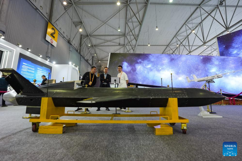 Guests view a drone displayed at an aerospace science exhibition in Chengdu, southwest China's Sichuan Province, April 24, 2026. An event marking the 11th Space Day of China kicked off in Chengdu on Friday, under the theme "A Seven-Decade Celestial Path, A shared Cosmos Faith." A series of activities are scheduled during this year's event, including an opening ceremony, an aerospace science exhibition, an aerospace culture and arts forum.